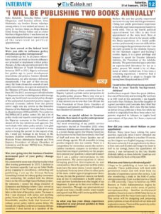 Very valid question. I don’t lay claim to being an expert in the field. I stated this clearly in the book. But the totality of my life experience fits into that professional circle. I reviewed my sojourn so far and I discovered I am indeed a policy entrepreneur. I have the rare privilege of combining so many fields and operating so successfully in all of them. What drove me mostly was the yearning to fight poverty of which I was a childhood victim. I grew up to realise that governmental powers are the best instrument to get the poor out of poverty. Hence, the aspiration to be close to the corridor of powers was to get power holders to change the story of the poor for the better. Top power holders hardly have policy entrepreneurs as advisors or players within their inner circles; they are mostly surrounded by hawks focussed on milking the system for self-enrichment. My background, my experience and my current position place me at a great advantage to write on the subject.