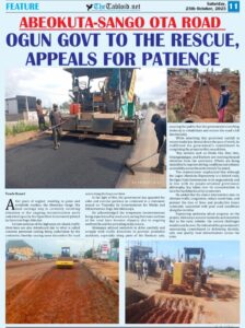 After years of neglect, resulting in pains and avoidable crashes, the Abeokuta–Sango Ota dual carriage way is currently receiving attention in the ongoing reconstruction work embarked upon by the Ogun State Government piloted by Governor Dapo Abiodun.