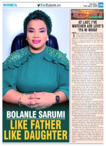 Politics is her inheritance of which Hon. Bolanle Aminat Sarumi is proud as daughter of Hon Alli Balogun, a former member of the House of Representatives (1999–2003), popularly known in political circle as Alli Bay. But beyond the podium of politics, she is an entrepreneur, philanthropist, and educationist with a proven track record.