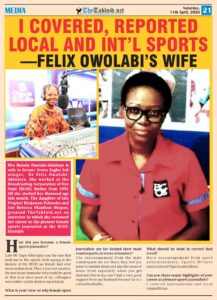 I covered, reported local, international sports–Felix Owolabi’s wife