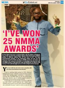 I have won 25 NMMA awards. Altogether, I have won 29 competitive journalism awards, including DAME, UNESCO, WAMECA and I international Organization for Migration West and Central Africa award.