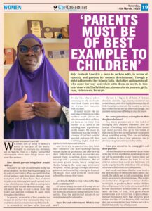 Haja Sekinah Lawal is a force to reckon with, in terms of capacity and passion for women development. Though a strict adherent to her islamic faith, she is free and open to all who come her way and relate with them on merit. In this interview with TheTabloid.net, she speaks on parents, girls, rape, violence etc. Excerpts