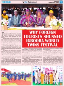 Foreign tourists were a key feature of the twins festival where children produced by the same pregnancies are celebrated with funfair, sponsored by the Oyo State Government through the Ministry of Culture and Tourism complemented by other stakeholders.